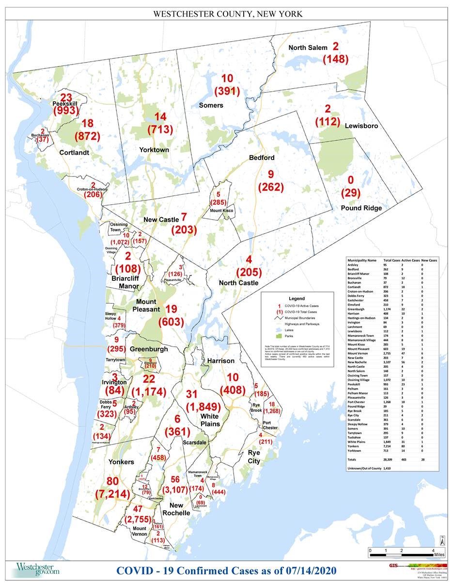 In the Town of Cortlandt since the beginning of the pandemic the Town has had 872 COVID-19 positive cases. As of today there are 18 active cases and the case load increased by 1 (Please refer to the map below). The information we are providing to our community comes directly from Westchester County government. This is how the numbers will be reported going forward. Once again, the number listed above is for unincorporated Cortlandt and does not include the Villages of Buchanan and Croton-on-Hudson. The unincorporated portion of the Town is everything outside of the Villages of Croton and Buchanan. That equates to 30 square miles and 32,000 people. Please abide by the Governor's guidelines to stay home and stay safe in order to prevent this virus from spreading. Thank you.