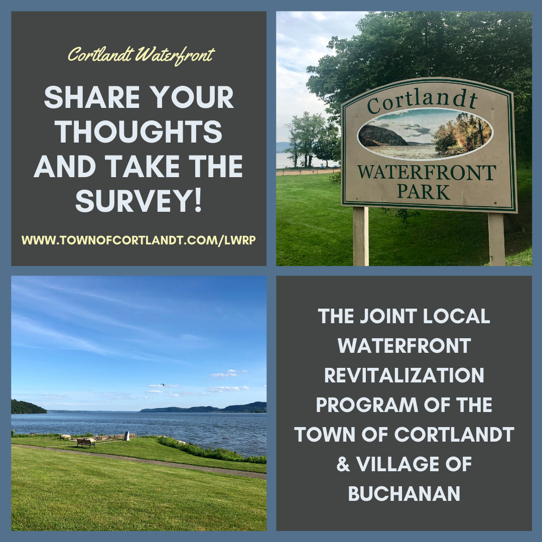 Imagine a revitalized Hudson River waterfront from the Bear Mountain Bridge through Indian Point and Buchanan to Croton. The Town of Cortlandt and the Village of Buchanan are collaborating on a waterfront revitalization program to enhance recreational, economic, environmental and educational opportunities. We want to hear your opinion and your vision for this waterfront revitalization. Get involved by taking this online survey at www.townofcortlandt.com/lwrp today!