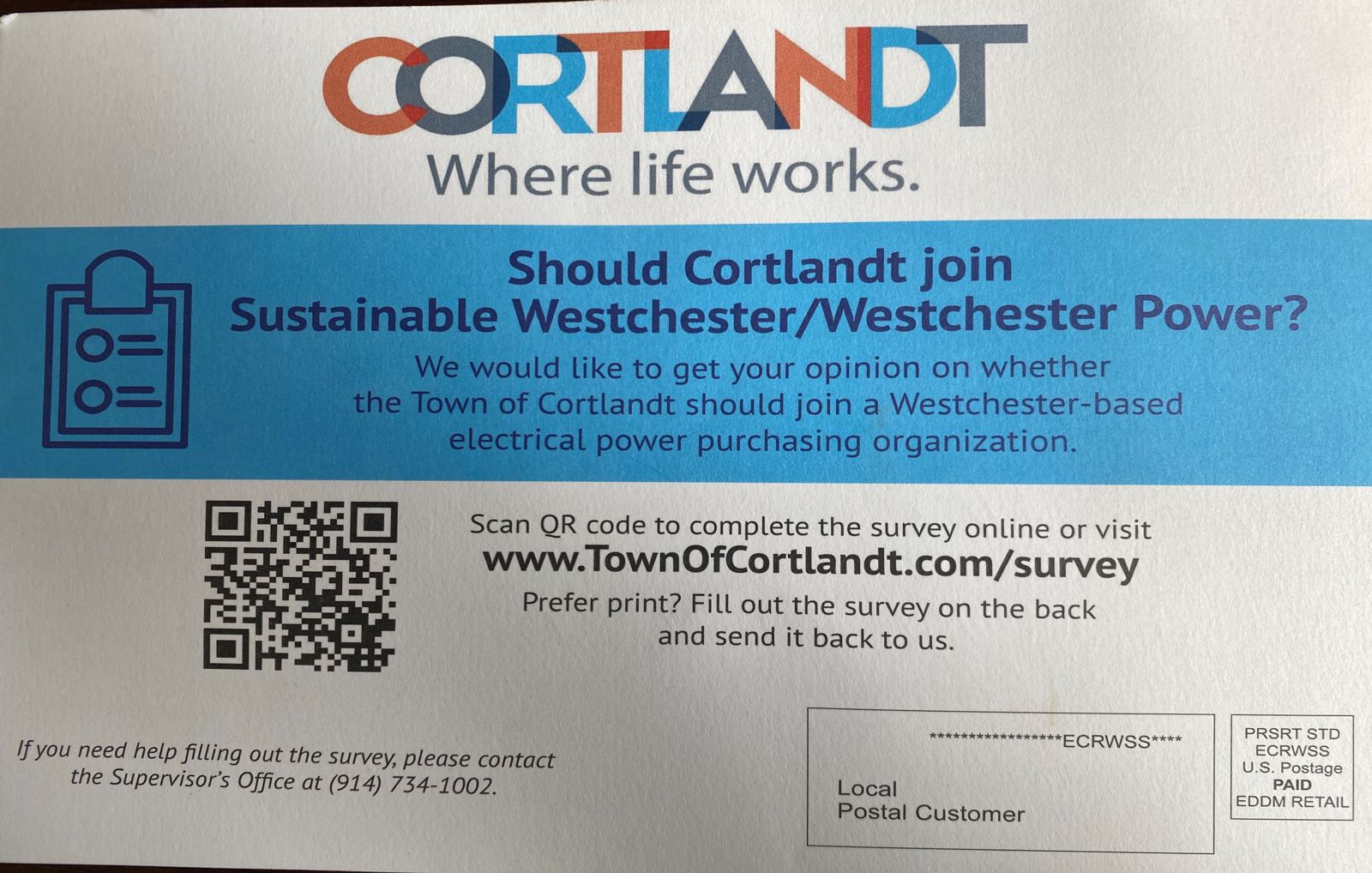 Should Cortlandt join Sustainable Westchester/Westchester Power? We would like to get your opinion on whether the Town of Cortlandt should join a Westchester based electrical power purchasing organization.
