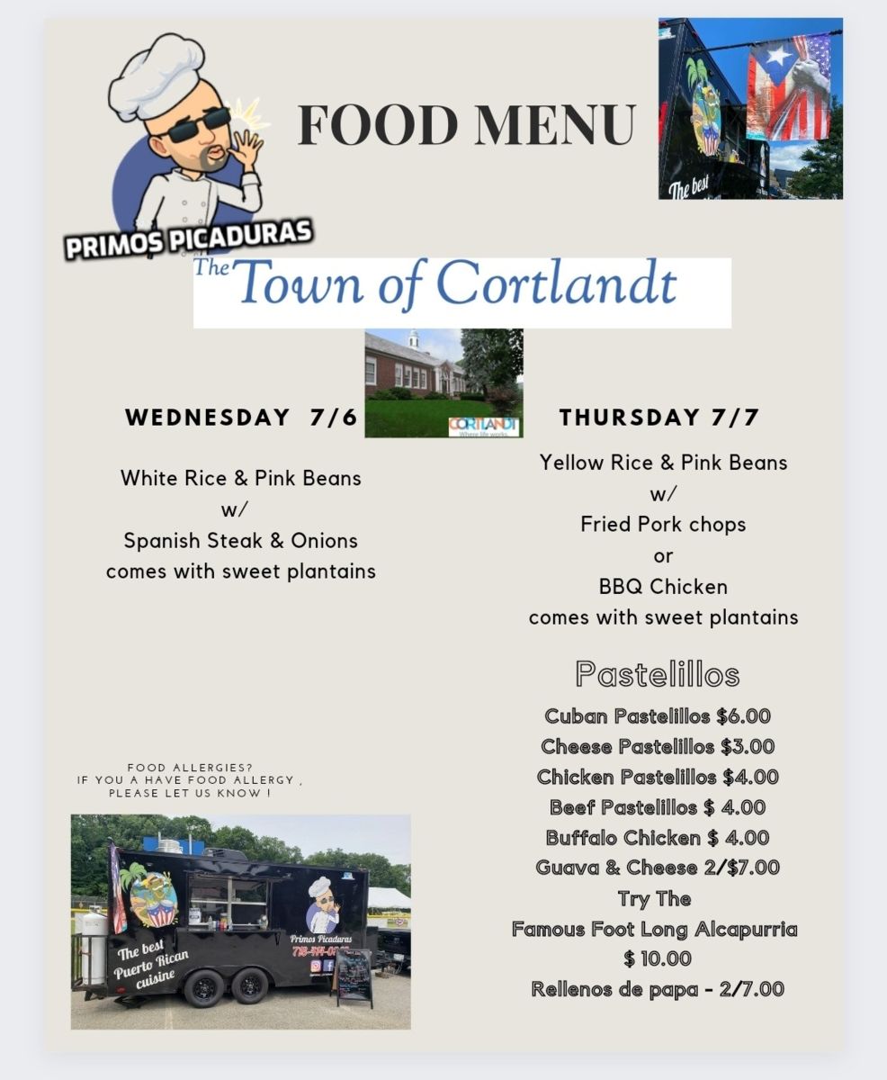 Stop by today and enjoy some amazing food from Primos Picaduras food truck that will be stationed at the Cortlandt Town Hall today, Wednesday July 6th and tomorrow, Thursday, July 7th!