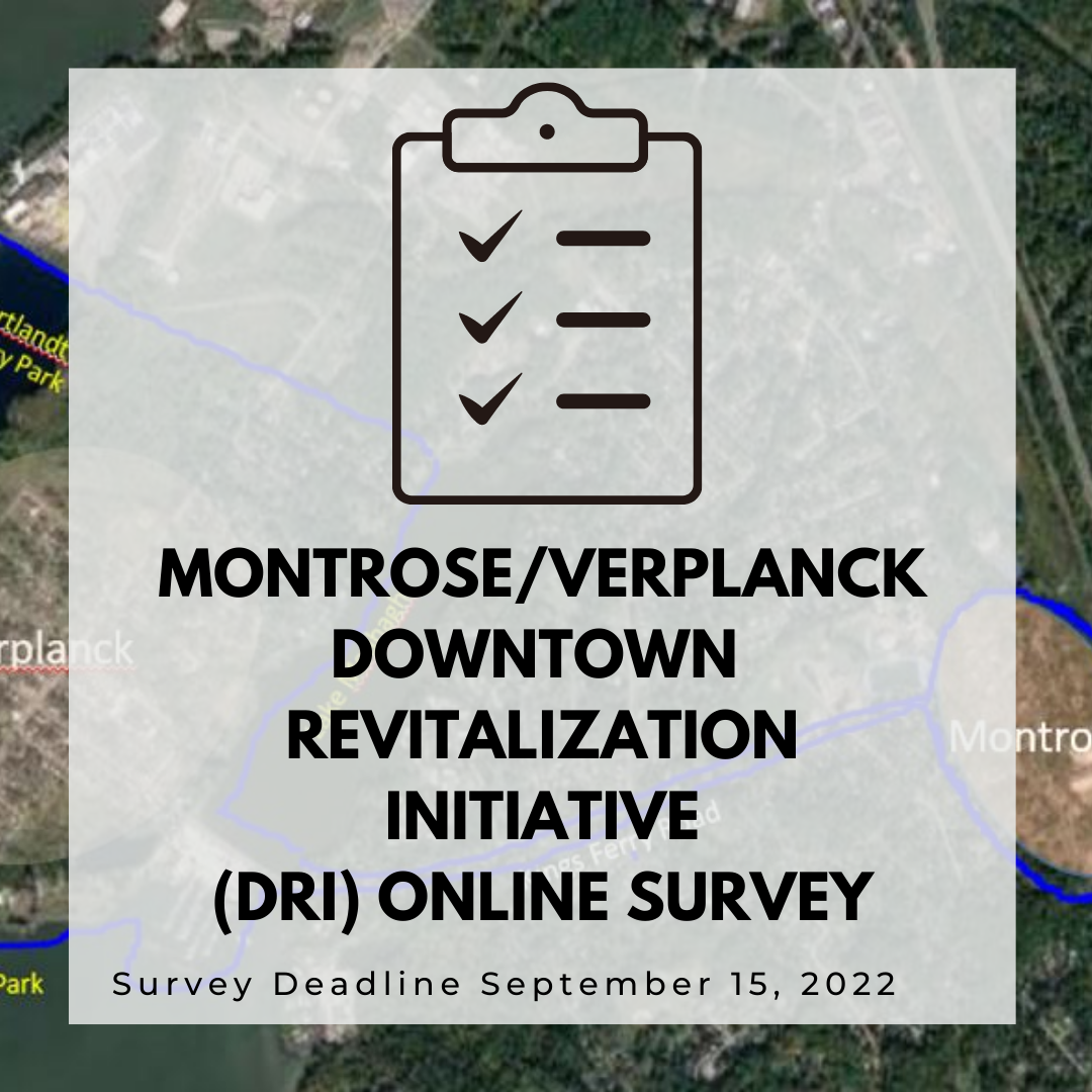 The Downtown Revitalization Initiative (DRI) is a New York state-funded grant that gives communities between $10 and $20 million dollars to bring life to their downtowns. The Town of Cortlandt will be submitting a DRI grant application in 2022. To prepare the DRI application, the Town Board has established a DRI Committee comprised of Cortlandt residents, business owners, Town Board members, and Town Staff. The Town is focusing its DRI application on the hamlet centers of Montrose and Verplanck (“Downtown Planning Area”). This survey will be used to inform the Montrose and Verplanck Downtown Planning efforts. Learn more about DRI by visiting www.townofcortlandt.com/dri. Take the survey today! The survey deadline is September 15, 2022.