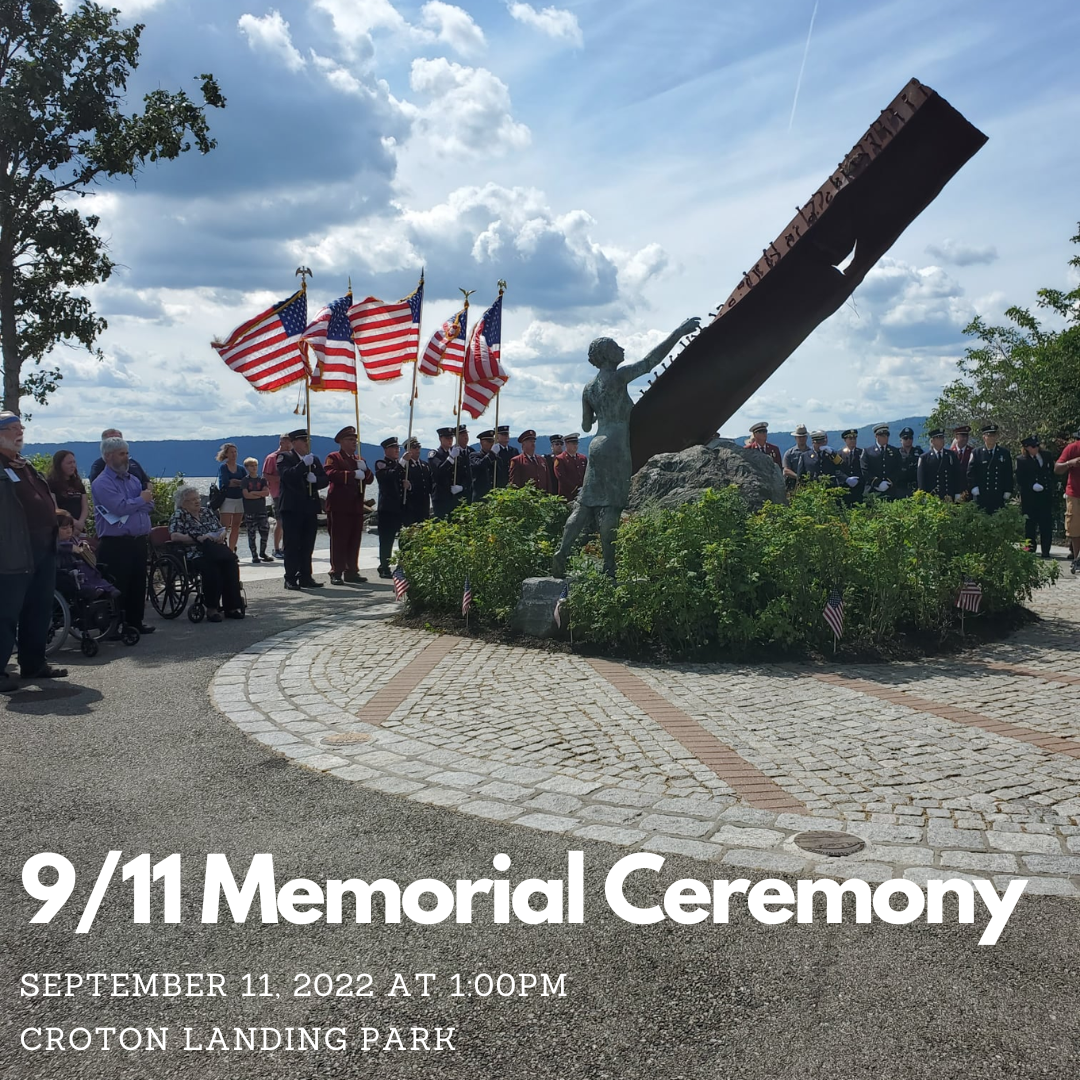 The ceremony will take place at 1:00 p.m. on Sunday, September 11, 2022 at the “Reaching Through the Shadow” Memorial at Croton Landing Park in Croton-on-Hudson, New York. In case of inclement weather, the ceremony will be held indoors at the Harmon Firehouse, located at 30 Wayne Street, Croton.