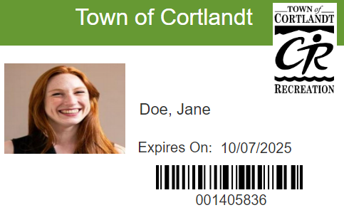 Each family member requiring a new photo ID card must be present during registration for photos.    Cortlandt Town Hall Recreation Department, Office #11 1 Heady Street, Cortlandt Manor, NY 10567 Dates and Times: