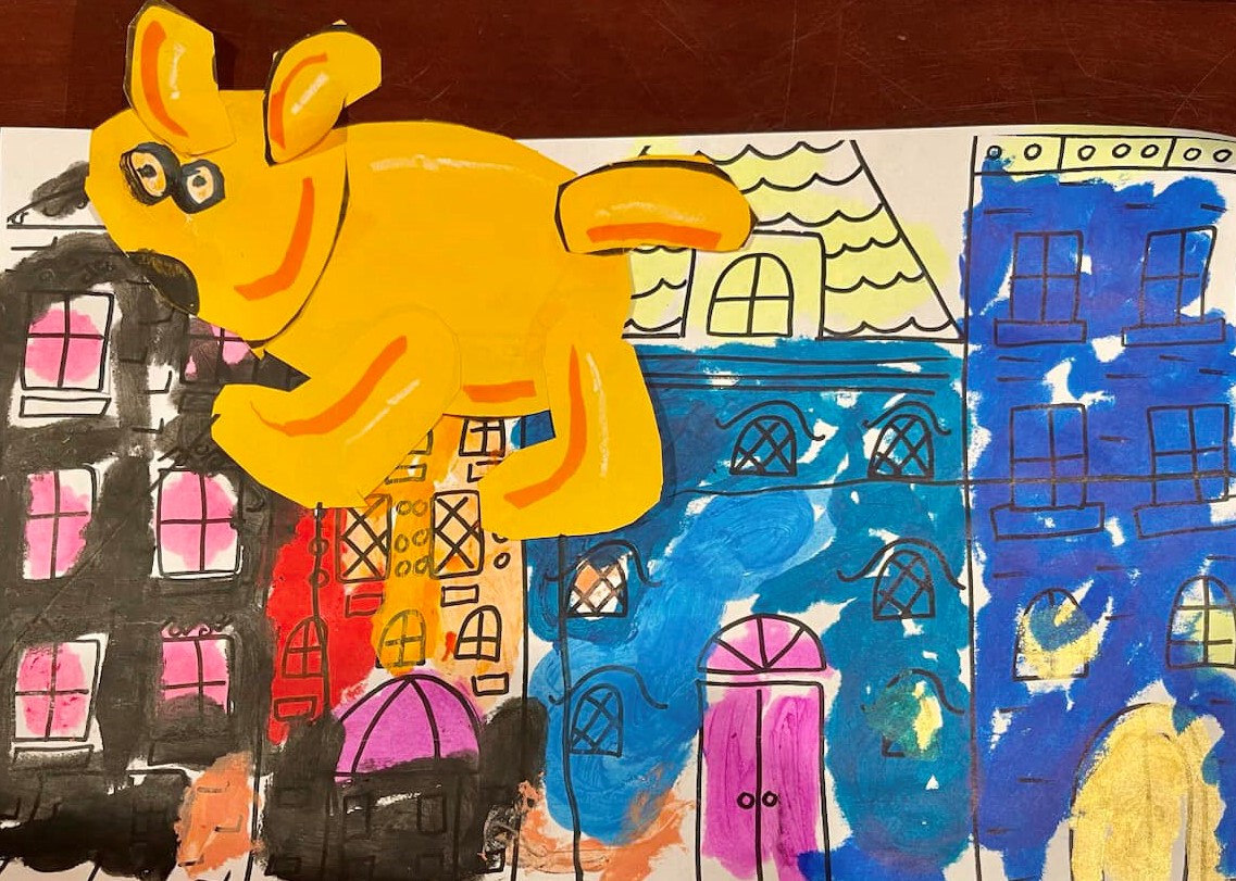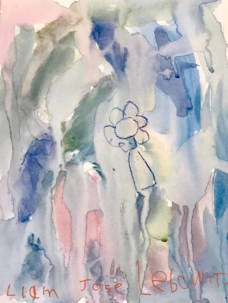 Today’s featured artist is kindergartner, Liam Jose Lebowitz. Liam’s works selected for the exhibition are wonderful expressions of bold colors and energetic marks. Spring Flower, 2022 embraces the exhibition’s themes of springtime, awakening, renewal, and the natural world with a solitary flower emerging from a well-watered pastel ground.