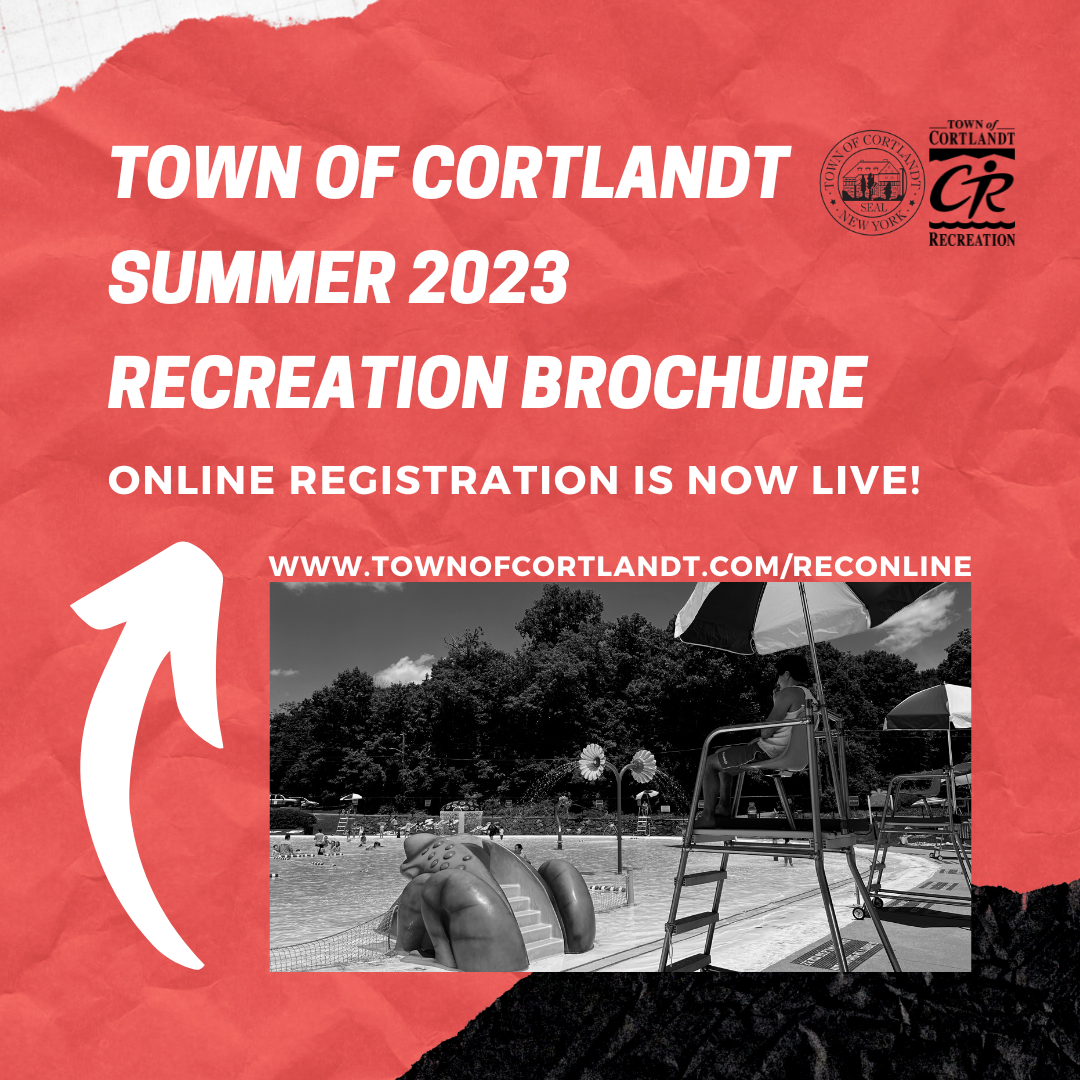 The Town of Cortlandt Summer 2023 Recreation Program Brochure is now live for registration at www.townofcortlandt.com/reconline! Please contact the Town of Cortlandt Recreation Department at tocrec@townofcortlandt.com or 914-734-1050 with any questions or concerns.