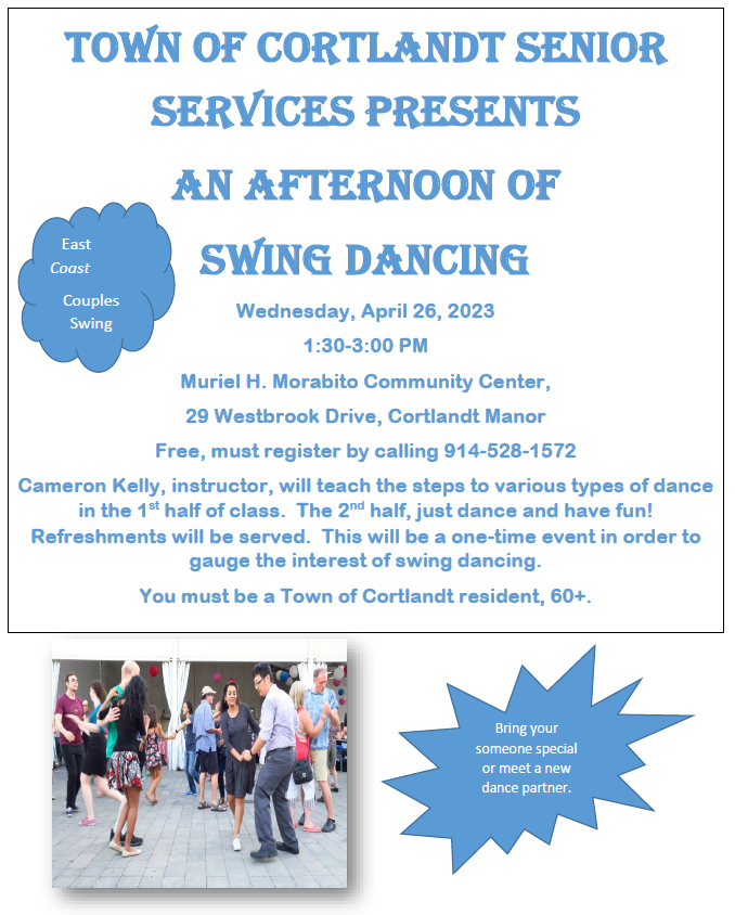 Join us at the Muriel H. Morabito Community Center with instructor Cameron Kelly! Residents will learn the steps to various types of dance in the 1st half of class, and in the 2nd half, just dance and have fun! Pre-registration is required at 914-528-1572.