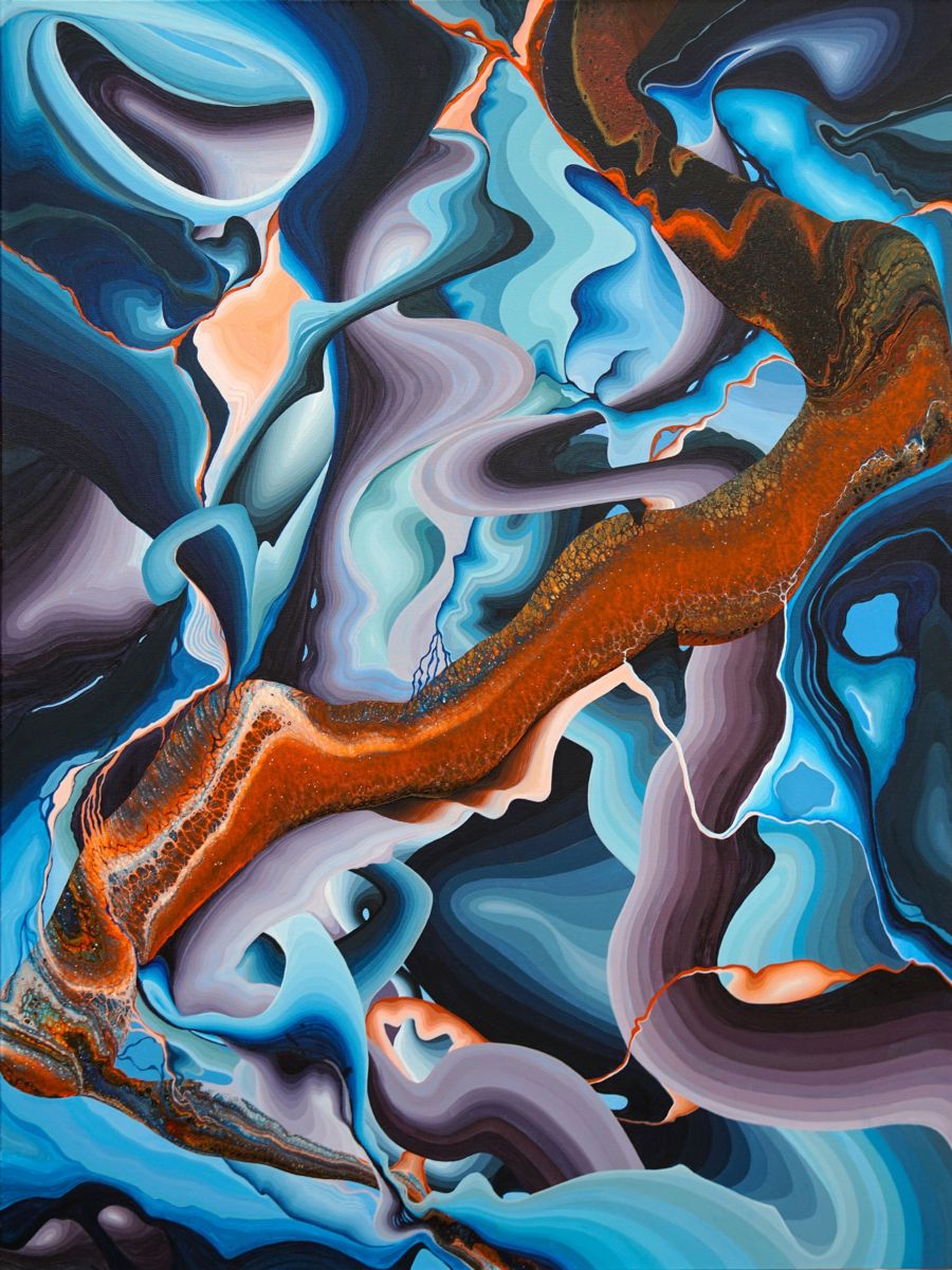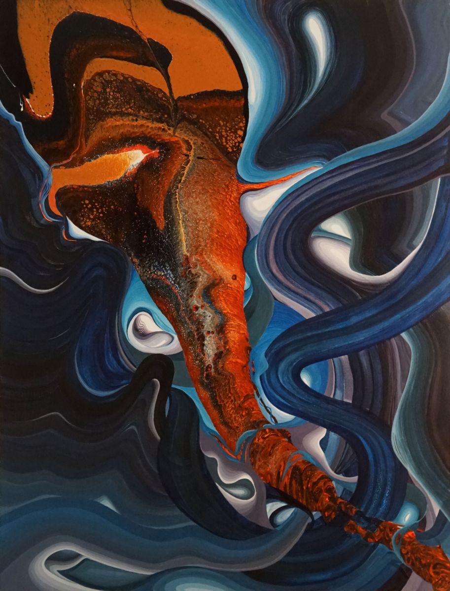 Abstraction in art can challenge a viewer. Often there are no recognizable images, just the paint, canvas, and all the formal decisions an artist makes to develop a final composition, which is not say the works have no grounding in the physical world. Diana Kogos’s works are intimately tied to her experiences and understanding of the natural world. Her works seek to translate her knowledge of the oceans and to communicate her feelings on a landscape that many of us rarely experience.