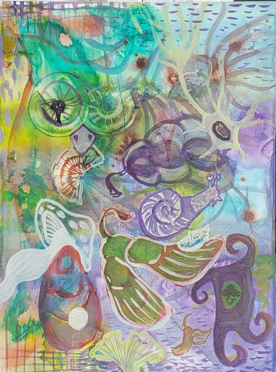 I am a painter, potter, poet, and photographer, who lives with the aftermath of a traumatic accident. My paintings, photographs and ceramic sculptural works celebrate the extraordinary biodiversity still to be found even in urban and suburban environments. Depicting living and extinct life forms from across geologic time, I explore the vulnerability of nature and our precious wild spaces to urbanization and development in this era or global pandemics and accelerated climate change. -Chele Coyne