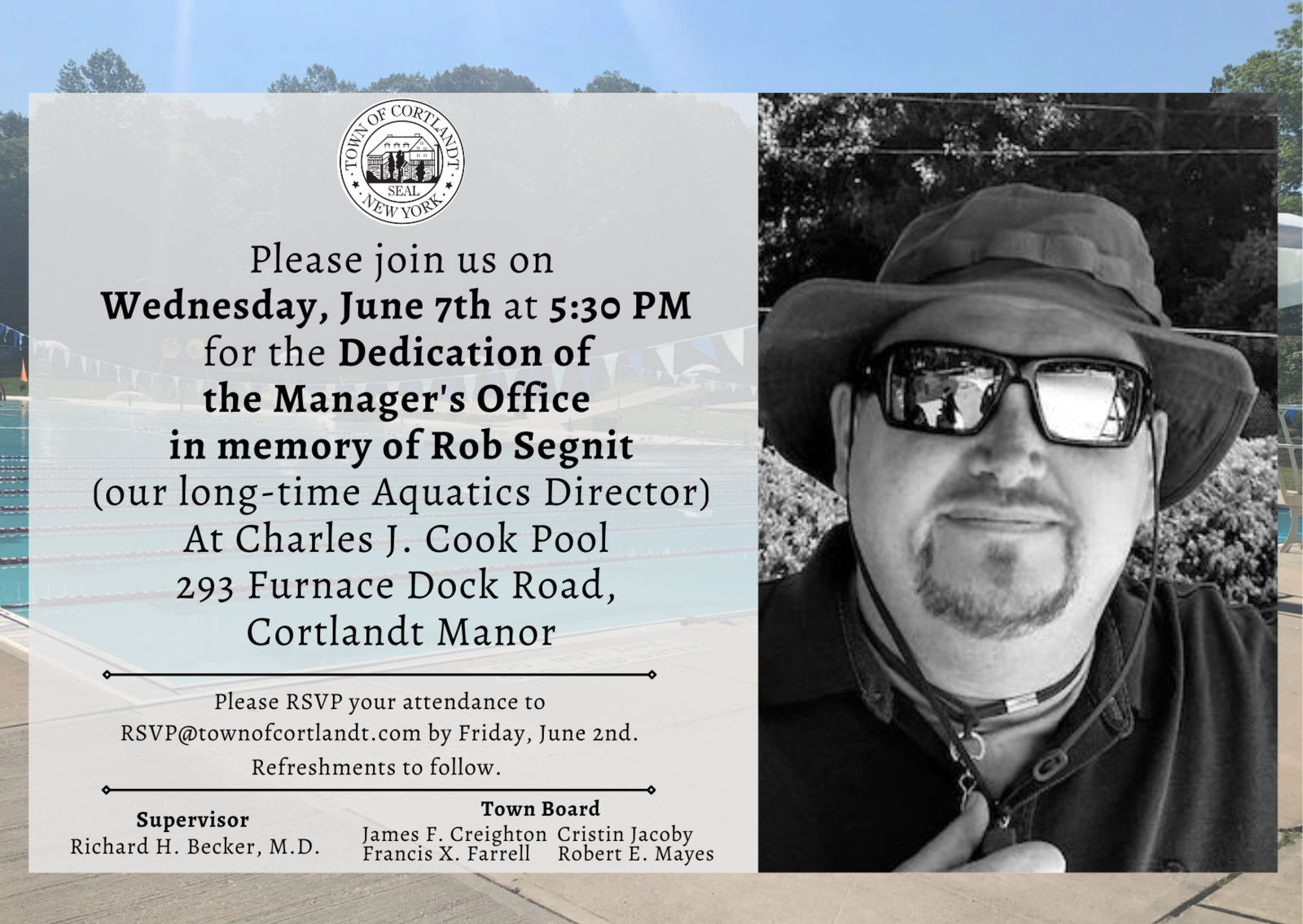 Dedication of the Manager's Officer in memory of Rob Segnit (our long-time Aquatics Director): 6/7/23 at 5:30PM