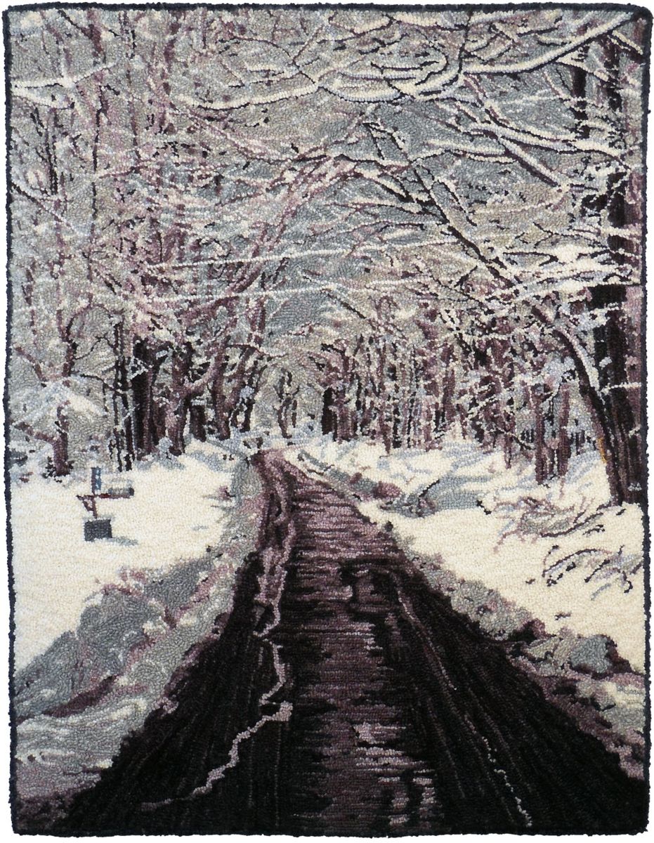 Currently on view Cortlandt Fiber Arts: A Contemporary Survey, explores contemporary trends in fiber-based works. Working with fiber offers artists a variety of methods for expressing ideas or capturing their subject matter. Nancy Thun’s works, mirrormirror and Heathen Hill, are exquisitely rendered landscapes. Nancy hand dyes raw wool yarn and then meticulously hooks the yarn resulting in these visually arresting scenes.