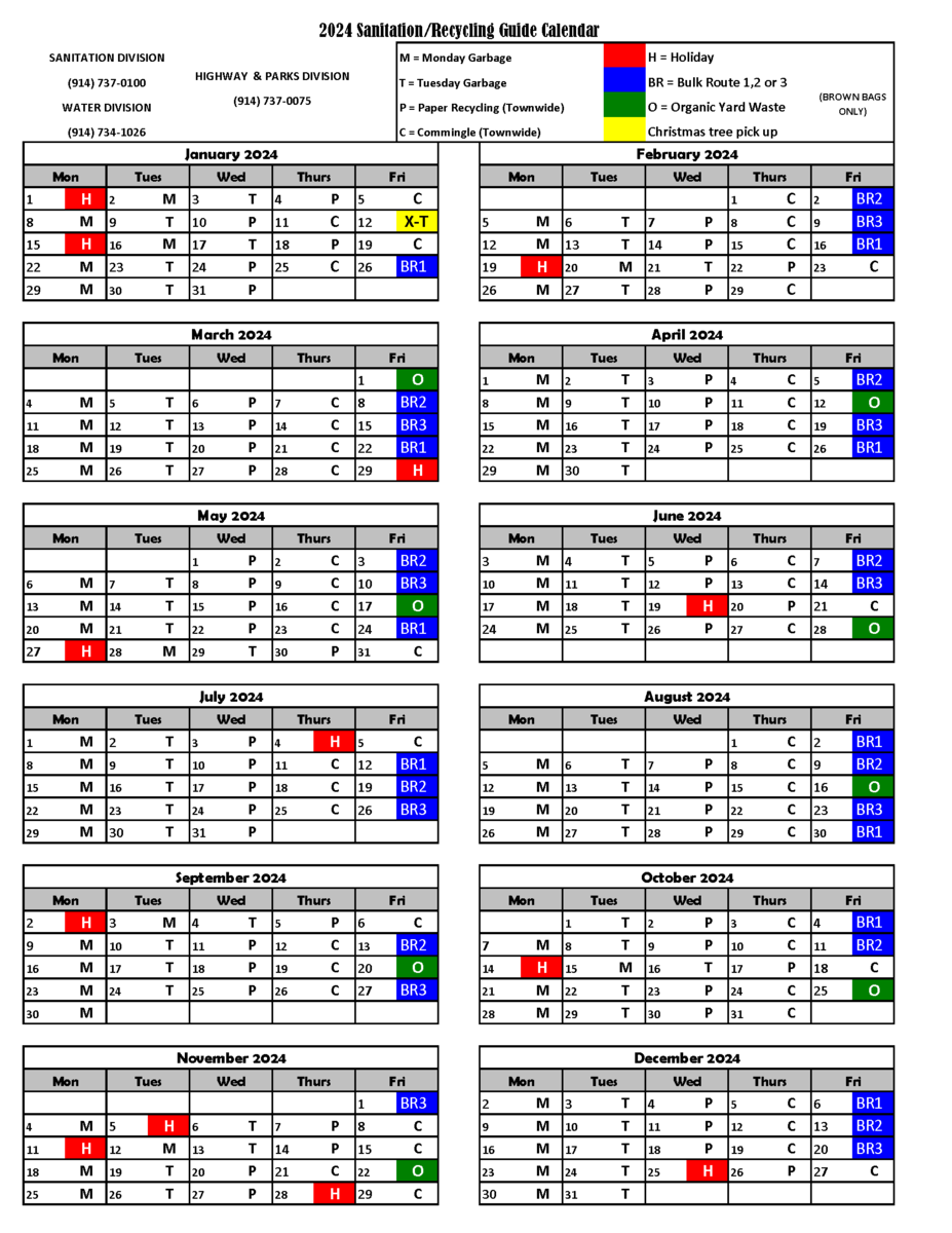 Check out our website to view the 2024 Sanitation/Recycling Guide Brochure and calendar! Or download the Recycle Right Westchester app on the App Store or Google Play to view pickup schedules for any address in the Town where sanitation services are provided by Cortlandt Sanitation.