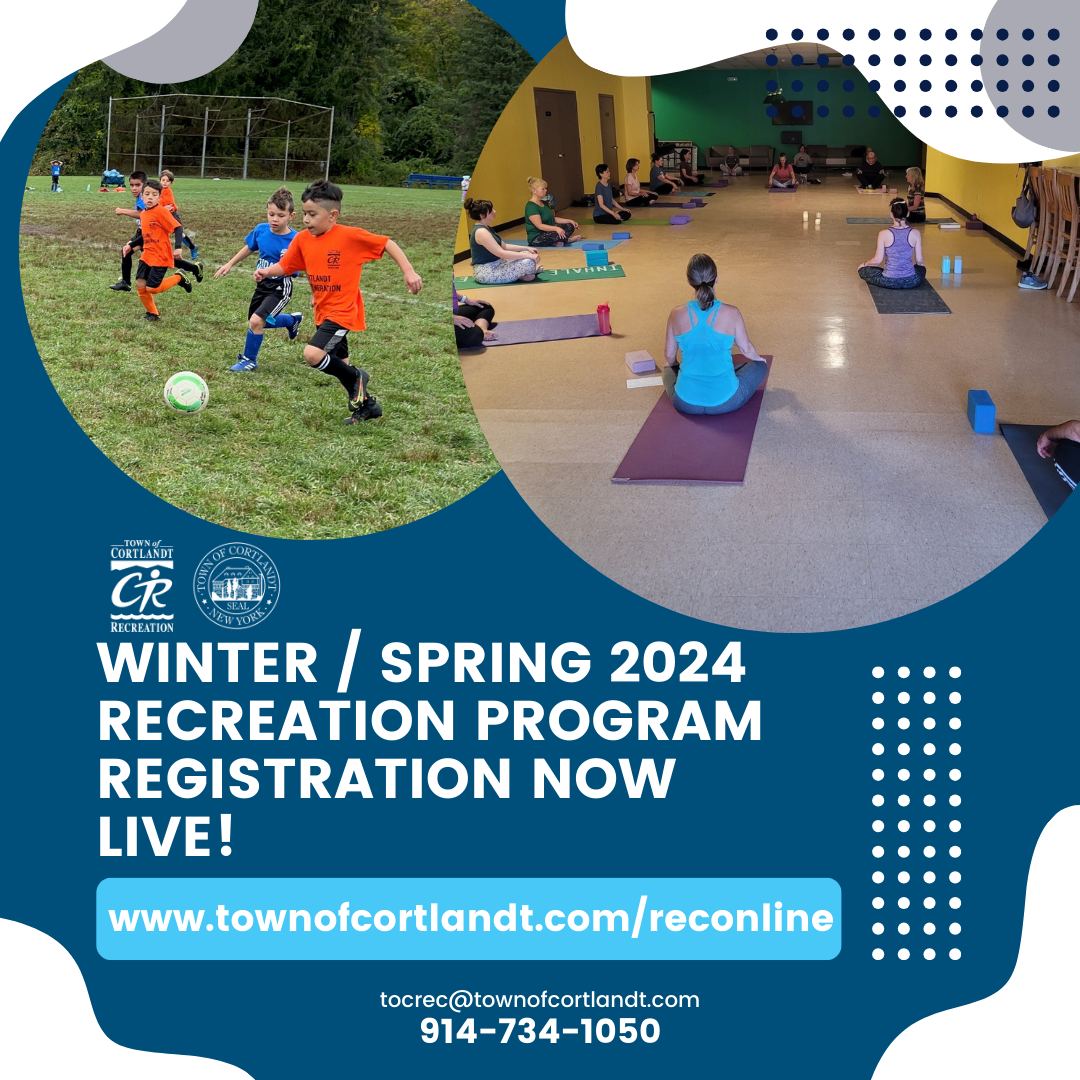 The Town of Cortlandt Winter/ Spring 2024 Planner is now live for registration at www.townofcortlandt.com/reconline !