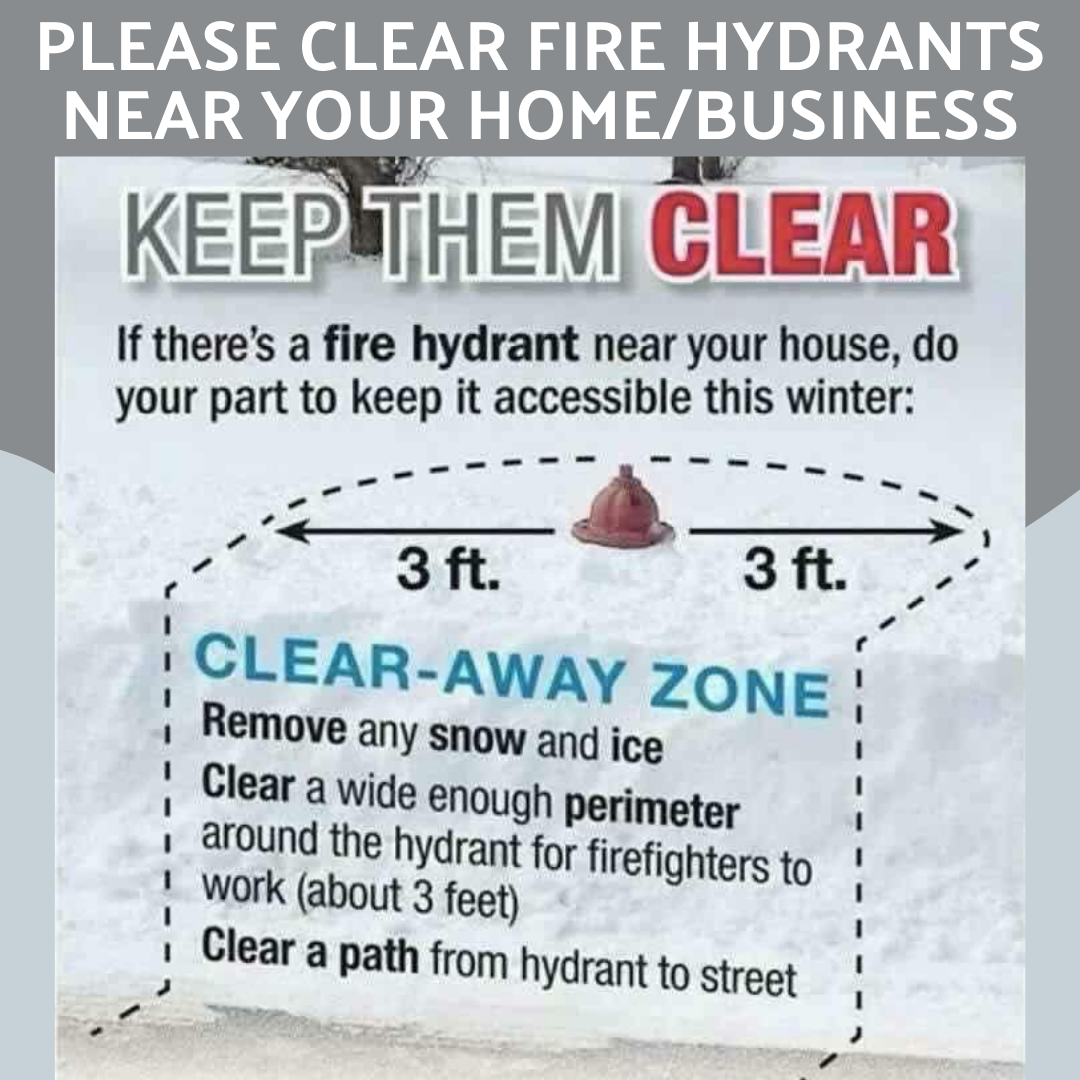 Also, we ask any residents that have hydrants or catch basins near their home or business to please clear them of any snow or ice.