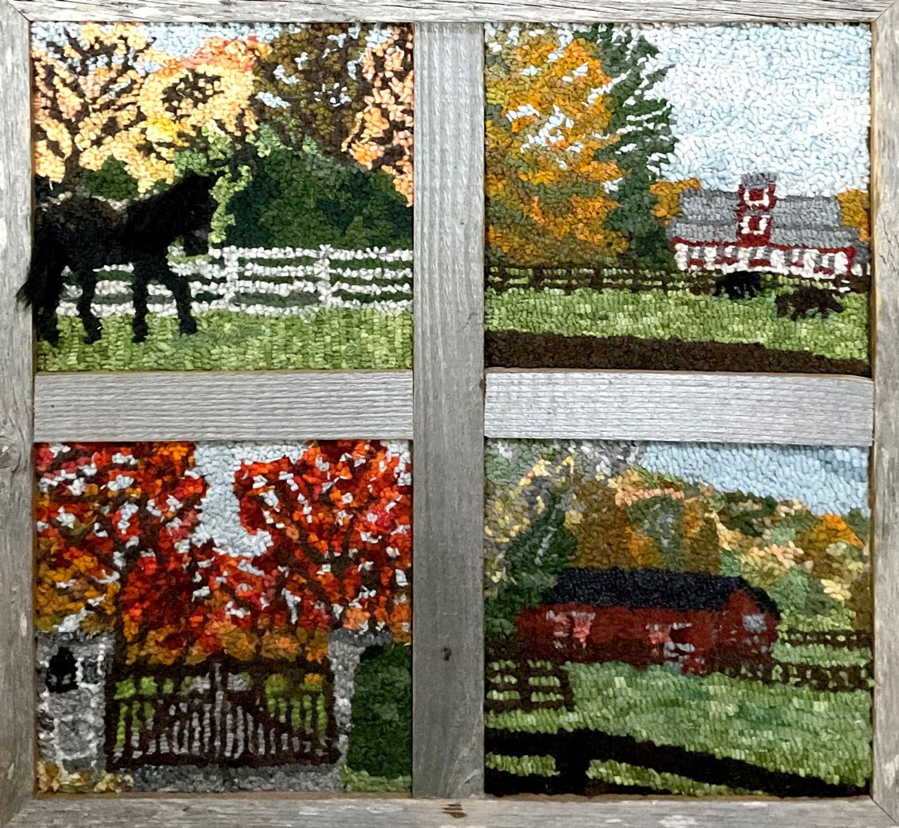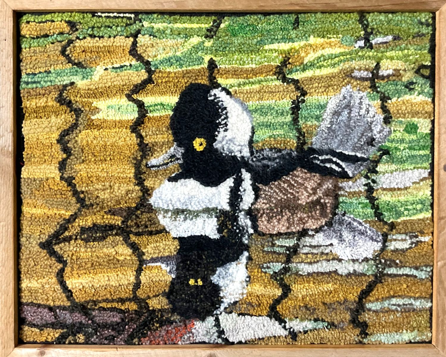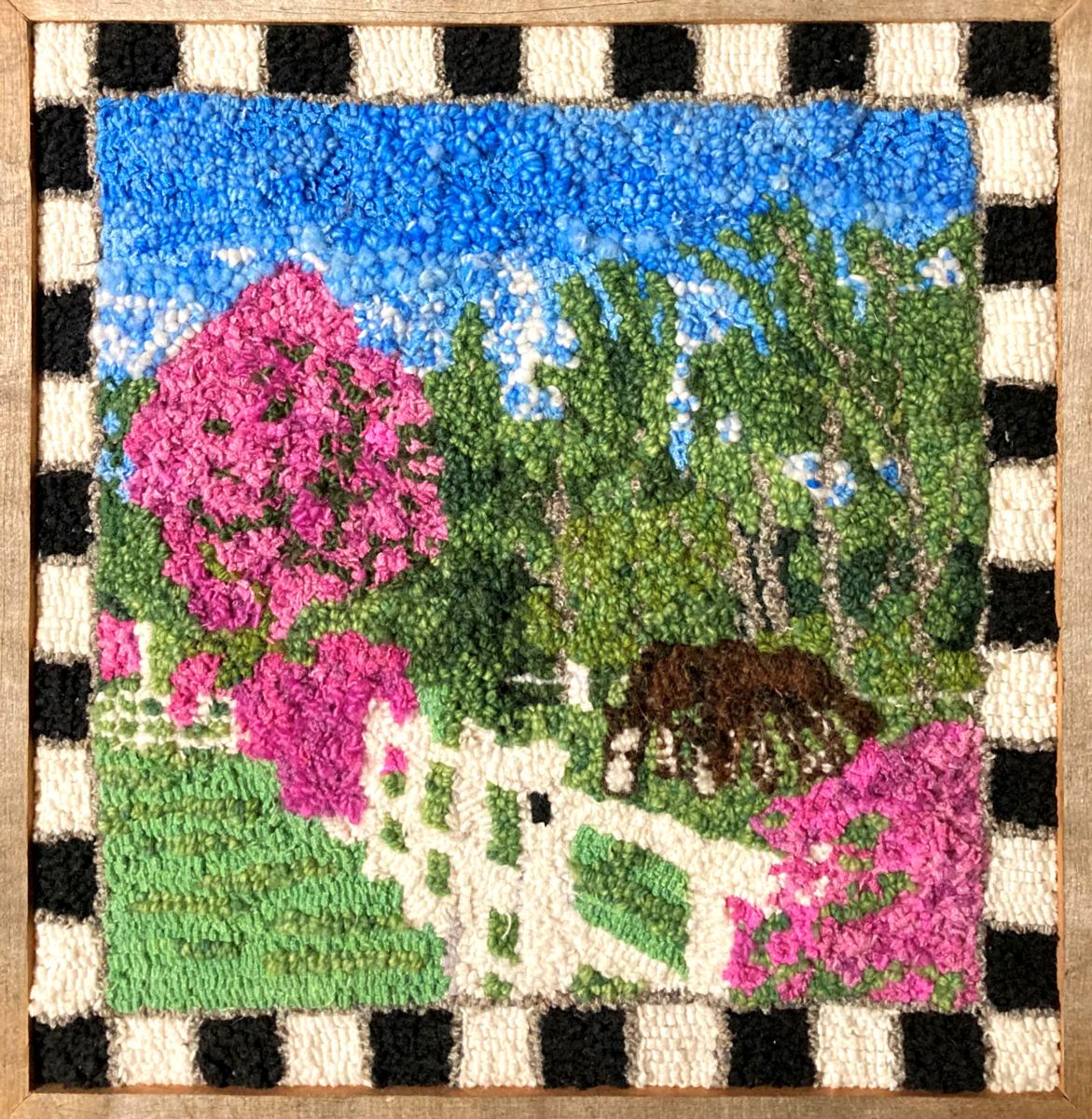 “I’m a textile artist with a passion for painting with wool yarn and strips. Rug hooking is pulling one loop at a time to create the picture. I hand dye a lot of my wool to increase my palette. Commissions also accepted.” – Arlene Tift