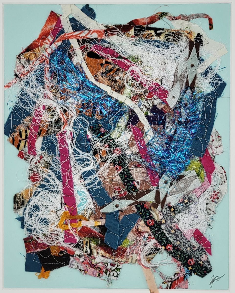 Now in its final days, Cortlandt Fiber Arts: A Contemporary Survey explores contemporary trends in fiber-based works. A common theme amongst this exhibition’s artists is the repurposing of discarded materials. Working with fiber expands an artist’s potential to bestow new context, meaning, and value to often overlooked materials. In Jennifer Larrabee’s hands, the denim of jeans is transformed into abstract compositions that highlight and juxtapose the variety of hues of the material over the material’s original function.
