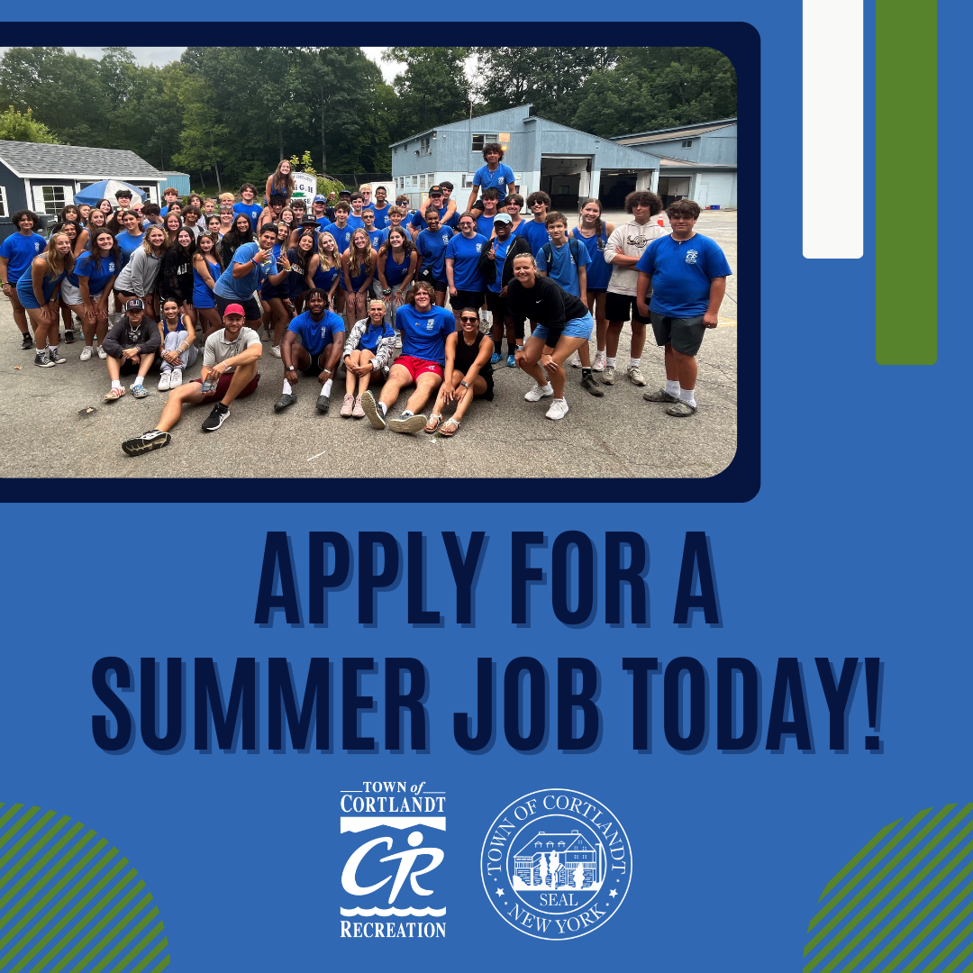 The Town of Cortlandt is looking for counselors for our Summer Day Camps! Dates of camp are July 1st- August 9th. Click here for the Seasonal Employment Application.