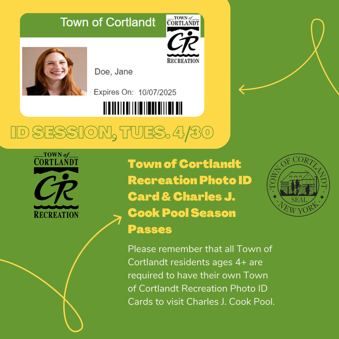 The Town of Cortlandt Recreation Department will host limited in-person registration for Town of Cortlandt Recreation Photo ID Cards, Charles J. Cook Pool Season Passes, and Hollow Brook Stickers/ Season Passes off business hours.