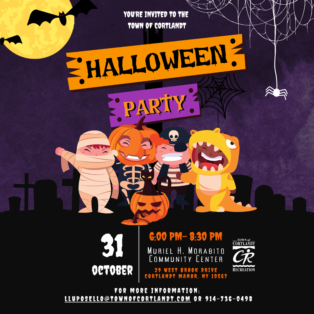 Families are invited to come trick or treat inside at our annual Halloween Party at the Muriel H. Morabito Community Center! Open to all children through the 5th grade accompanied by an adult. Activities will include entertainment, games, contests, treats balloons and a chance to be on cable TV! No registration required.