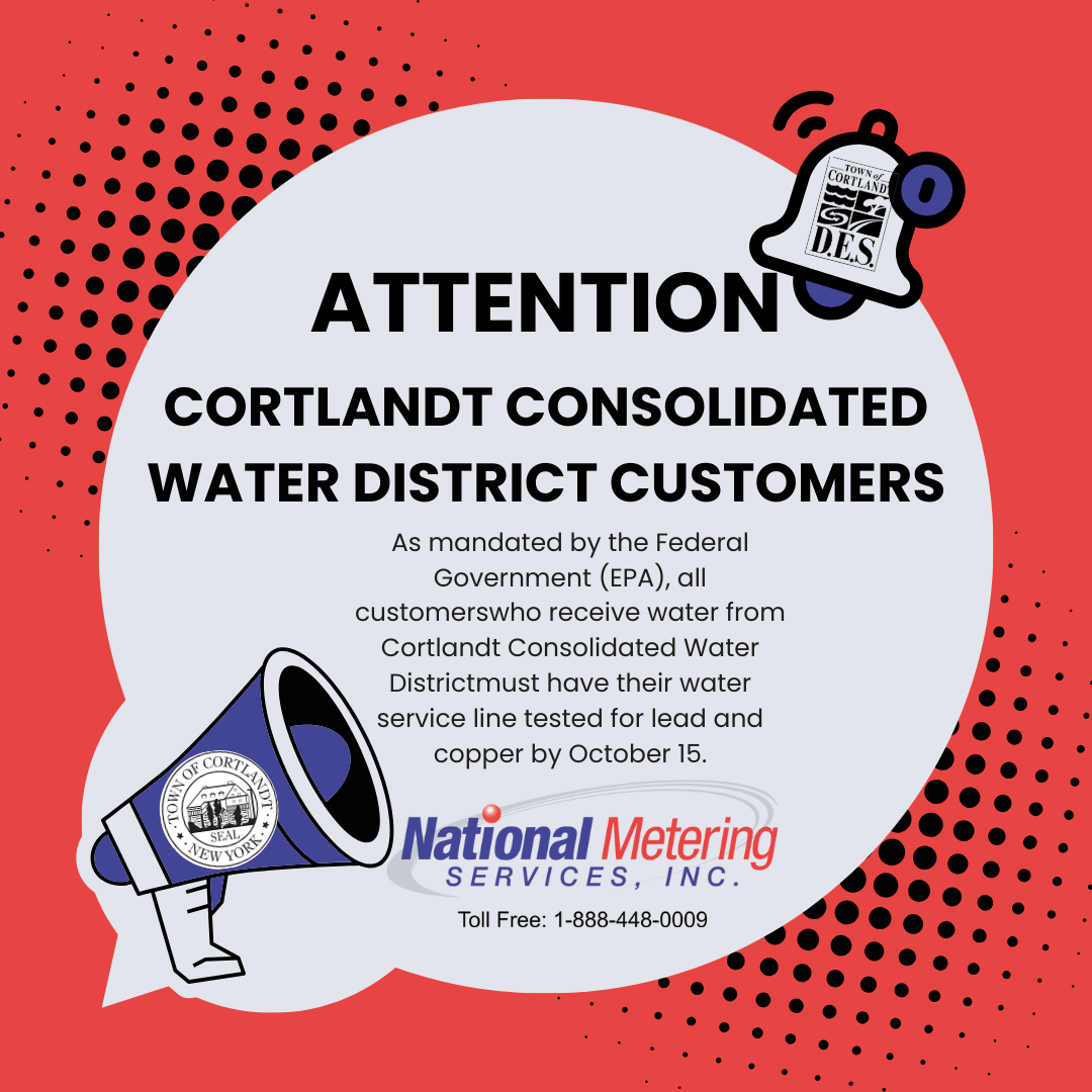 Beginning at 4:00pm this evening, our staff from the Department of Environmental Services and National Metering Services will be visiting homes that have not scheduled their appointment to have their water service line tested. Both DES staff and National Metering Services will have their ID badges and vehicles will be marked with the town seal or company logo. They will need permission to enter your home to test your water service line for lead and copper. It is a simple test that requires a couple of minutes to perform. In addition, if necessary the Town would like to upgrade the reading system on your meter, to make it more efficient.  This is mandated by the Federal Government (EPA) and must be completed by October 15th. This is protection for you and your family. Financial penalties for those who don't have this testing done may be imposed shortly.
