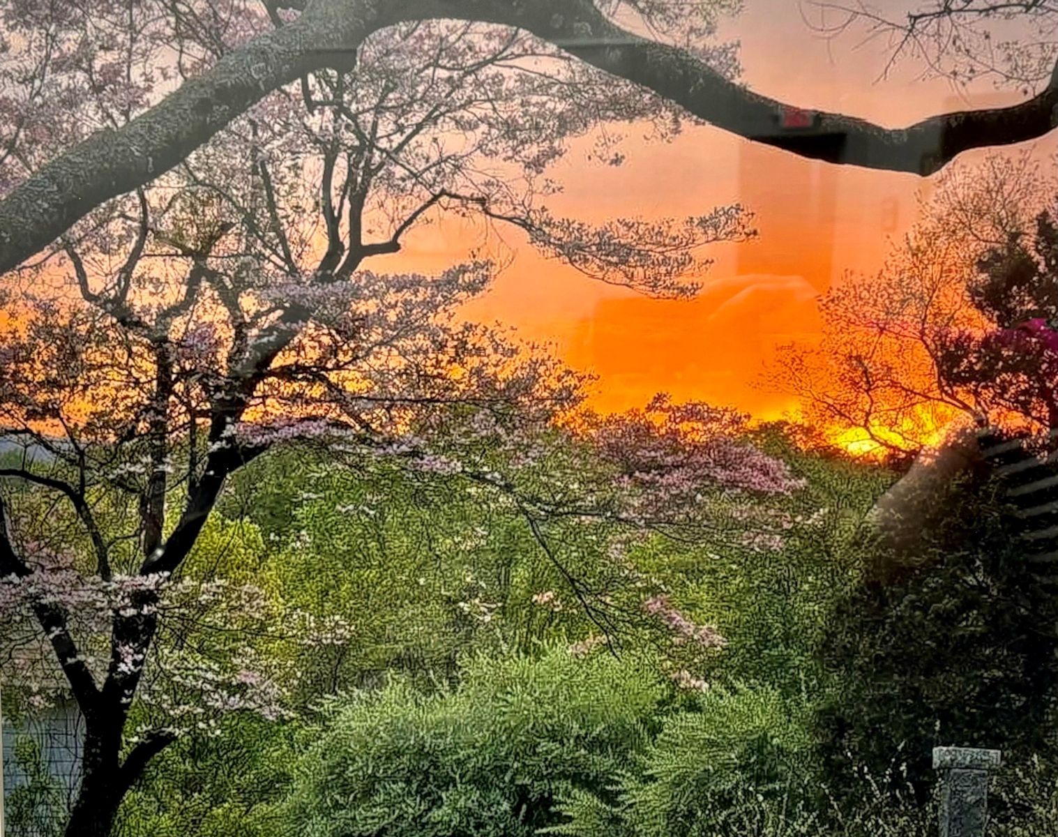Now in its final weeks at Town Hall, the Cortlandt: People, Places, Memories exhibition celebrates life in the Town of Cortlandt and provides a window into the informal and personal histories of the Town’s residents and businesses. All exhibition objects were kindly lent by Town residents and local business owners. Places shape our memories and personal histories during moments of importance and afterwards facilitate the recall of those moments. Local fiber artist, Arlene Tift, memorializes a significant moment in capturing this fiery sunset against the Spring landscape of her yard.