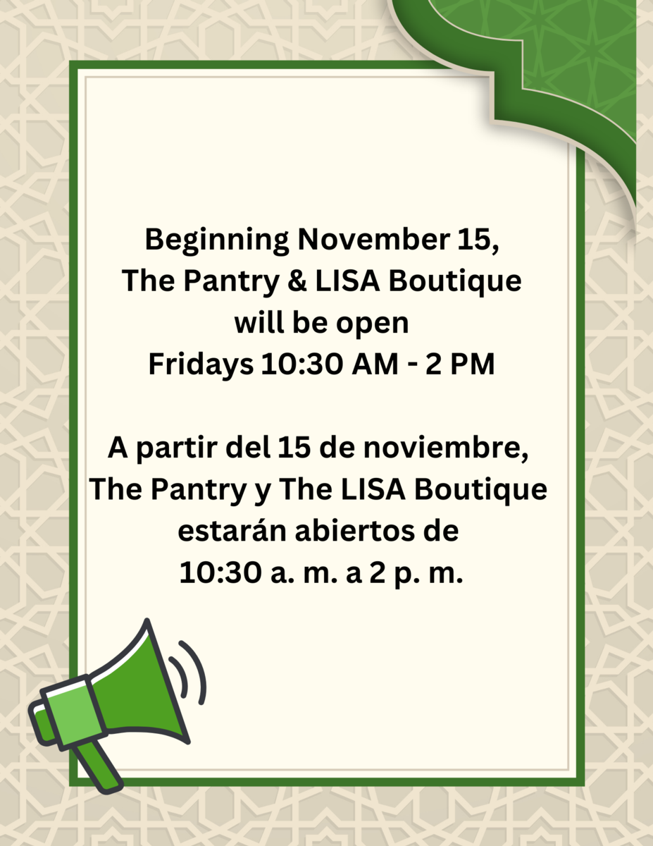 New Hours at The Pantry! Beginning Friday, November 15 - The Pantry( & LISA Boutique) will open Fridays from 10:30 AM - 2 PM.