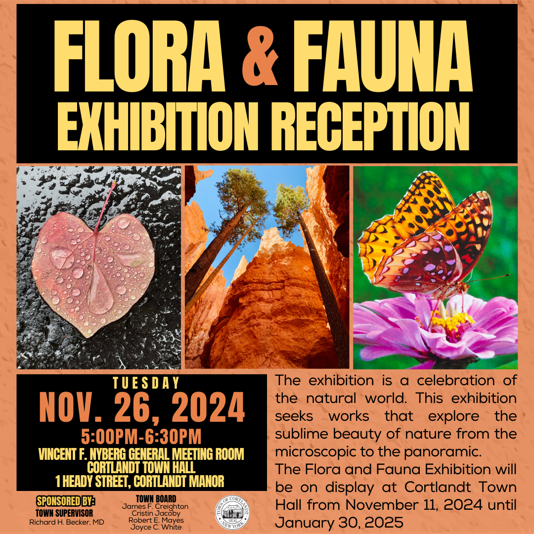 Sharing the beauty of nature with our new Flora and Fauna art installation! Our art curator Eren Johnson curated this wonderful and colorful exhibition displayed in the Vincent F. Nyberg General Meeting Room and the hallways of Cortlandt Town Hall. Join us on Tuesday, November 26th at 5pm for our Flora & Fauna Exhibition Art Reception at Cortlandt Town Hall and check out the beautiful pieces of work submitted by our talented local artists.
