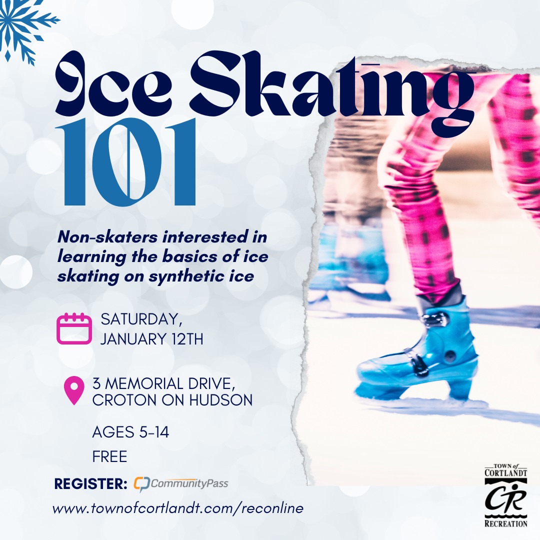 Join our free learn to skate program for children ages 5- 14 at the Cortlandt Ice Rink on Saturday, January 12th!