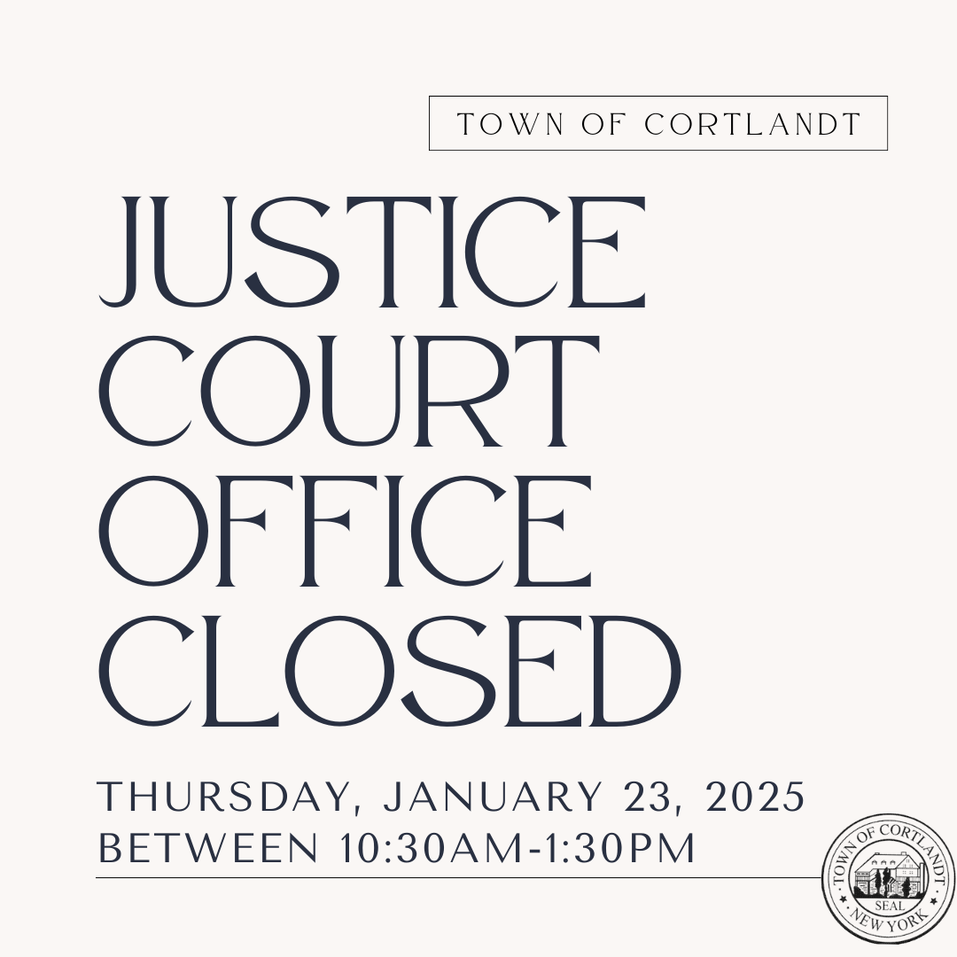 Justice Court Office Closed: Thursday, January 23 between 10:30AM-1:30PM