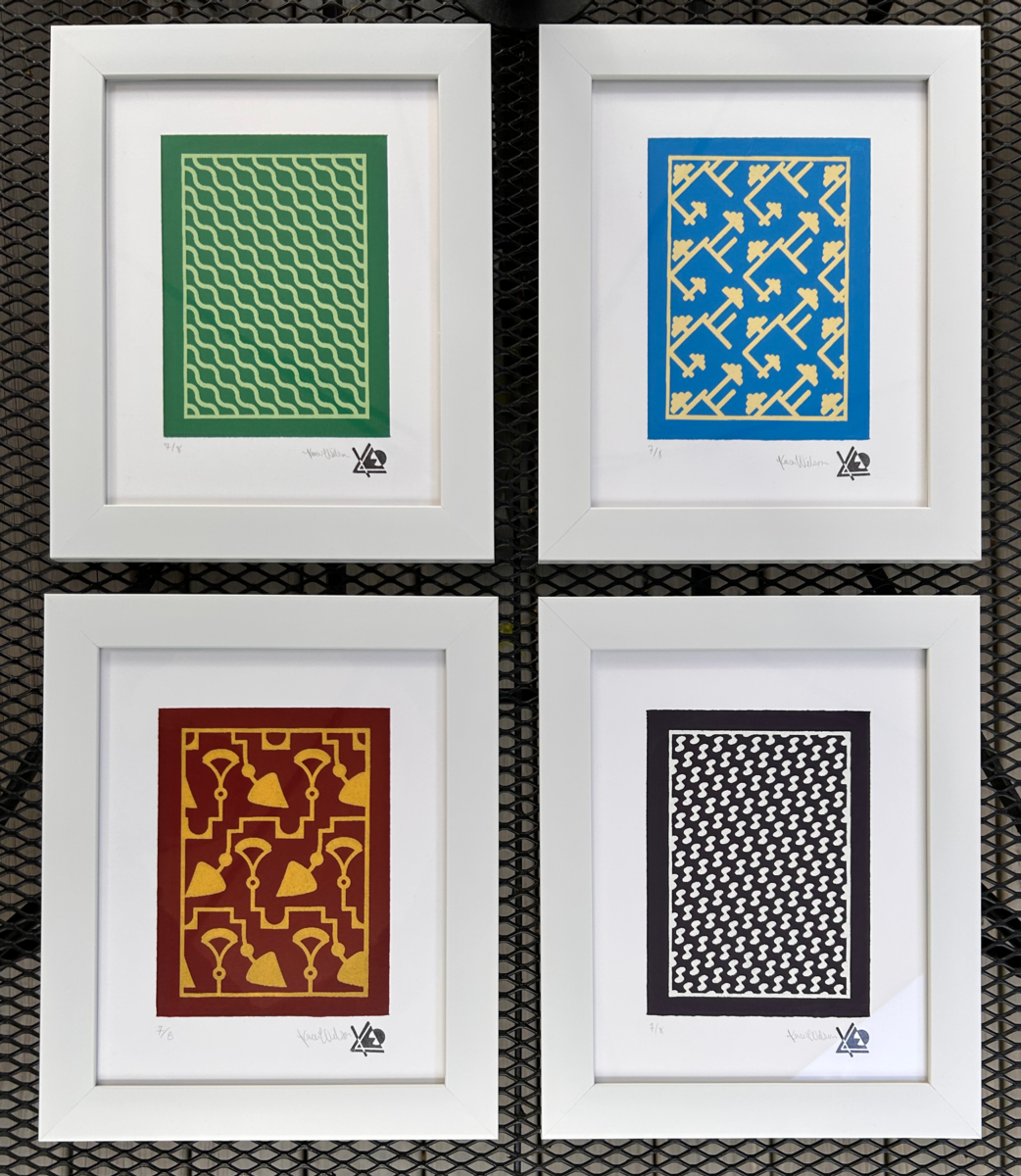 Currently on display at Town Hall Art IRL!, is an exploration of works by artists who use digital tools in their creative process or who create works that solely exist in the digital realm. Kara Wilson’s works require a fascinating blend of human, digital, and mechanical processes to produce, extending the creative possibilities beyond the capacity of the human hand. This blend of processes results in works that appear mechanically flawless with the first viewing, but in spending additional time with her works all of the distinct variations and fluctuations introduced by the human hand in the screen-printing process are revealed. This final human touch in the execution of her works supplies a warmth balancing her flat graphic compositions.