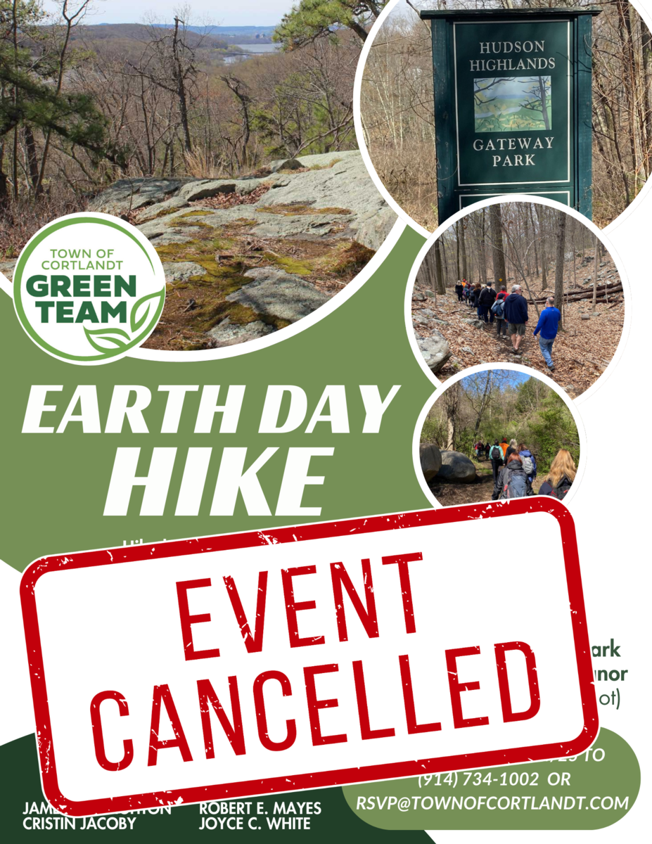 The Town of Cortlandt Green Team is disappointed to announce that we have to cancel the hike scheduled for tomorrow, Saturday, May 17th at Hudson Highlands Gateway Park due to uncooperative weather and wet conditions on the trail. We apologize for any inconvenience.