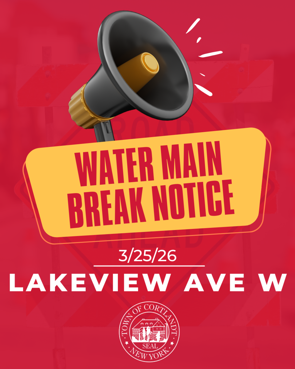 A water main break on Lakeview Ave West is currently impacting service for residents on Hillview Court, Lakeview Ave West, and Overlook Oval. The Town of Cortlandt water crews are currently in the process of isolating the leak to make the necessary repairs. During repairs you may experience interruptions in your water service. We apologize for any inconvenience that this may cause and we thank you in advance for your cooperation.