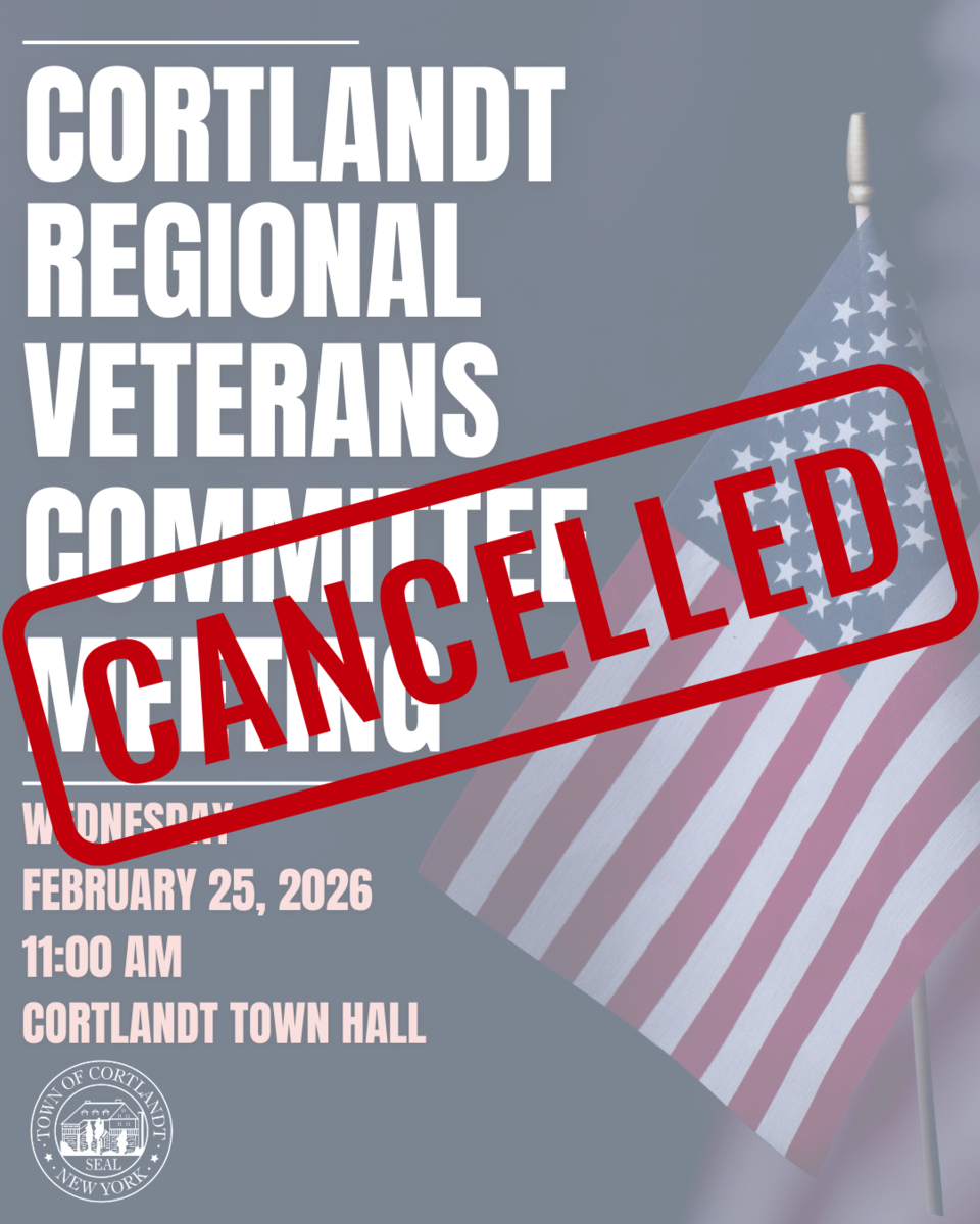 Due to weather, today’s Cortlandt Regional Veterans Committee meeting is cancelled. Thank you for your understanding and stay safe!