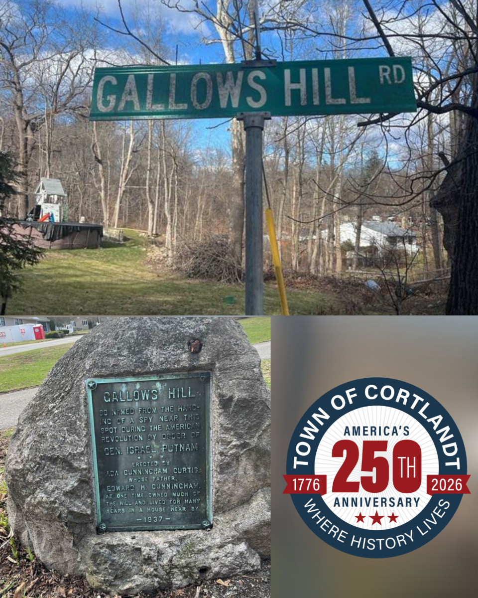 The plaque reads: "Gallows Hill, so named from the hanging of a spy near this spot during the American Revolution by order of Gen. Israel Putnam. Erected by Ada Cunningham Curtis whose father, Edward Cunningham, at the time owned.....the hill and lived for many years in a house nearby. 1937.” The site was also known as Bald Hill and Drake's Hill after Gilbert Drake, the owner of a local mill.