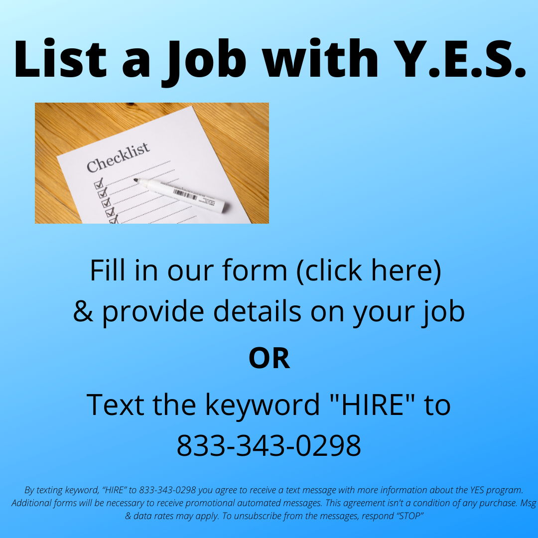 - Y.E.S. will collect the details on your job and create a listing.
