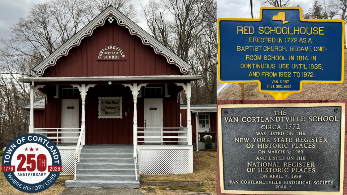 The Little Red Schoolhouse was erected in 1772 as a Baptist Church and remained a church until 1814, when it was converted into a one-room school house. It served as a school continuously from 1814 until 1935 , and then again from 1952 thru 1972, serving as a kindergarten-- as part of the Lakeland Central School District. In 1989, it was officially recognized on both the New York State and National Registers of Historic Places. It subsequently became the home and meeting place of The Van Cortlandville Historical Society, which began conducting its Early School Days program at the Schoolhouse in 1975, to enable local fourth graders to experience classroom life in the 1840s. Thus, it provided the rare opportunity for young learners to step into a preserved piece of educational history. The schoolroom and adjoining meeting room of the Society has books, photographs and classroom items dating back to that early era.